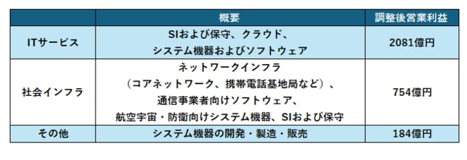 ハードウェアに代わり、現在の日本電気を支えるのがサービスです。コンサルティングを含むシステム開発のSI(システム・インテグレーション)や、通信インフラ関連のサービスなどが収益を支えます。機器の提供は、主にこれらの事業に付随するものです。