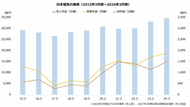 次に業績を確認しましょう。日本電気は2019年3月期まで利益の低迷が続きました。採算の悪い事業や案件の見直しに伴い、計上された構造改革費などが利益を圧迫しました。