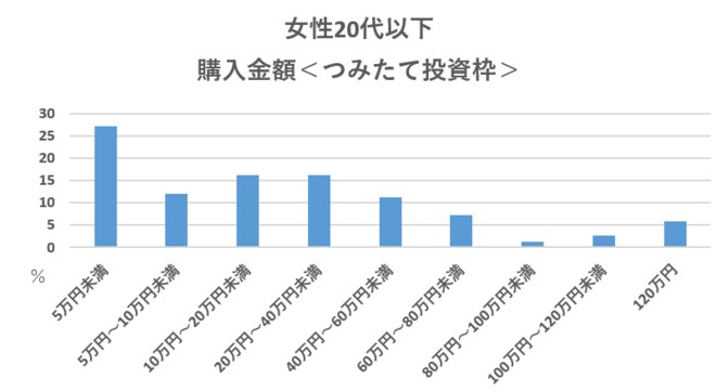 女性20代の「つみたて投資枠」購入金額は「5万円未満」が1位で27.2%を占めた。