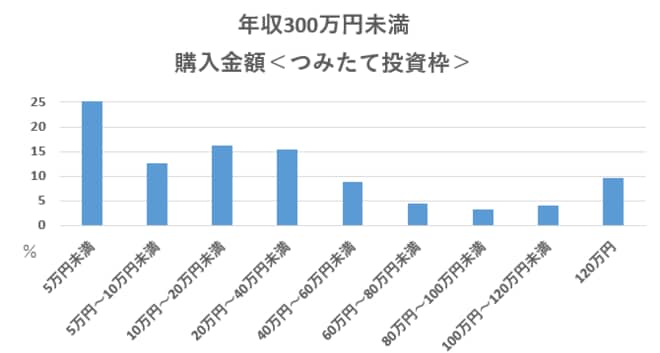 【年収300万円未満】つみたて投資枠1位「5万円未満」が4人に1人