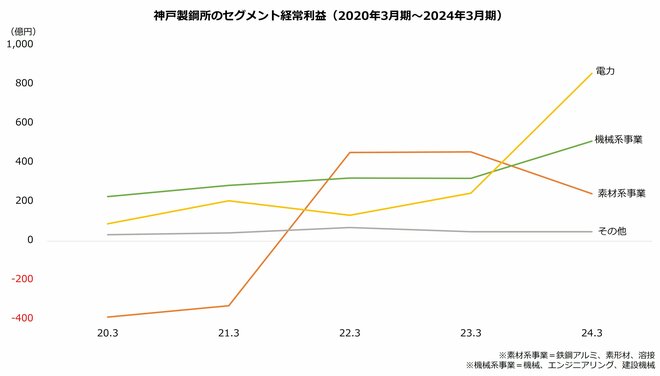 業績の回復は素材ビジネスがけん引しました。機械ビジネスが堅調に推移するなか、鉄鋼やアルミが黒字化し利益を押し上げました。また電力も、発電所が4基に増えたこともあり、利益貢献が強まっています。なお、電力の2024年3月期の経常利益858億円のうち、420億円は一過性(燃料調整費の期ずれ、貿易統計価格と購入価格の差異)です。