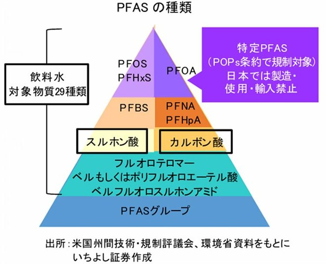 神様:PFASとは、有機フッ素化合物です。特にペルフルオロアルキル化合物及びポリフルオロアルキル化合物を総称して「PFAS」と呼び、1万種類以上の物質があるそうです。