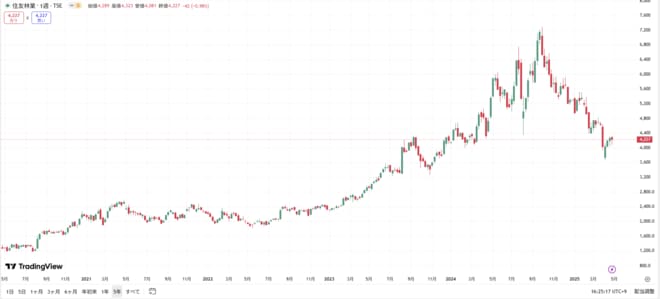 【住友林業の株価チャート(過去5年間)】