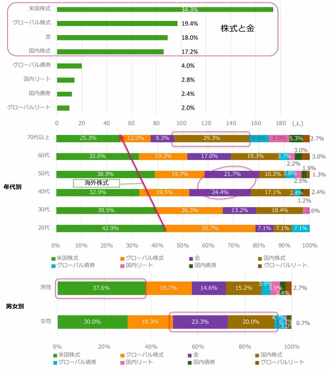 年代別では、若年層ほど海外資産への関心が高く、高年齢層ほど国内資産を重視する傾向が見られた。