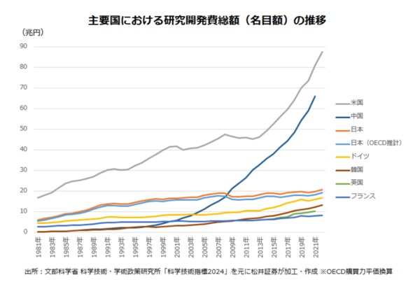 米国の経済成長の源泉は、そのイノベーション創出力といっても過言ではない。しかし、立場は安泰だろうか。様々な問題を抱えているにせよ、多様性を認め合う土壌がそれなりにあり、大学や研究機関などで数多くの優秀な頭脳が最先端の研究に没頭できていた環境をトランプ氏は蔑ろにしていないだろうか。人口減少や失業率の上昇など、ネガティブな情報ばかりが伝わる中国であるが、その裏で、着実にイノベーション創出力が育まれていたのである。実際に、イノベーション創出のためのインプットである「研究開発費」において、中国は米国を猛追している。