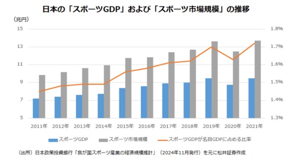 何も情緒的なことを言いたいのではない。スポーツに接し、楽しむ人が増え、日本のスポーツ力が上がっていることに比例するように、ビジネスとしてのスポーツの存在感は増している。スポーツに関連する産業の経済規模を示す「スポーツGDP(国内総生産)」や「スポーツ市場規模」は新型コロナウイルス禍の2020年を除けば右肩上がりだ。