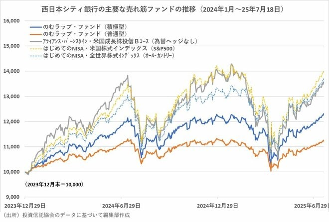 西日本シティ銀行の売れ筋ランキングで上位にランクされている「のむラップ・ファンド」は、国内外の株式・債券、そして、世界リート(不動産投信)を投資対象とするバランス型ファンドで、リスク水準の異なる5つのコースがある。もっともリスク水準が低い「保守型」は、国内外株式と世界リートへの投資比率の上限を50%以内にしている。「やや保守型」は60%以内、「普通型」は75%以内、「やや積極型」は85%以内、「積極型」は制限なしとしている。