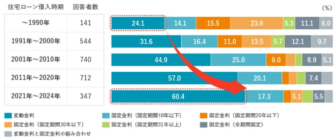 【図表1】住宅ローンの金利形態(1990年~2024年)