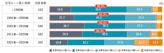 【図表1】住宅ローンの返済比率(1990年~2024年)