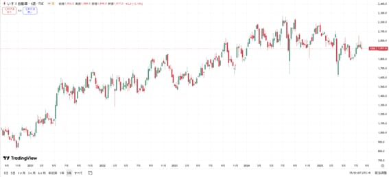 【いすゞ自動車の株価チャート(過去5年間)】