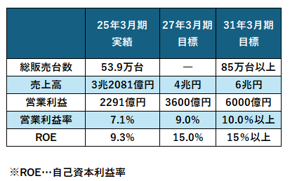 いすゞ自動車は、さらに長期の計画も公表しています。31年3月期に向け、売り上げを拡大しつつ、対売り上げ・対資本で利益率の改善を図る内容です。