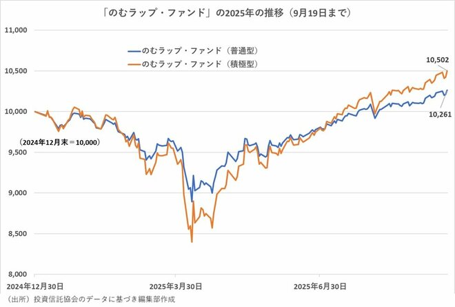 西日本シティ銀行の売れ筋ランキングで上位にランクされている「のむラップ・ファンド」は、国内外の株式・債券、そして、世界リート(不動産投信)を投資対象とするバランス型ファンドで、「普通型」は株式やリートなどリスク資産への投資比率が75%以内、「積極型」は制限なしとしている。世界的に株式市場が史上最高値の水準に上昇しているという市場環境を考えれば、おのずと株式への投資比率が高い「積極型」のパフォーマンスが強くなる。その期待感が「積極型」の人気につながっているのだろう。