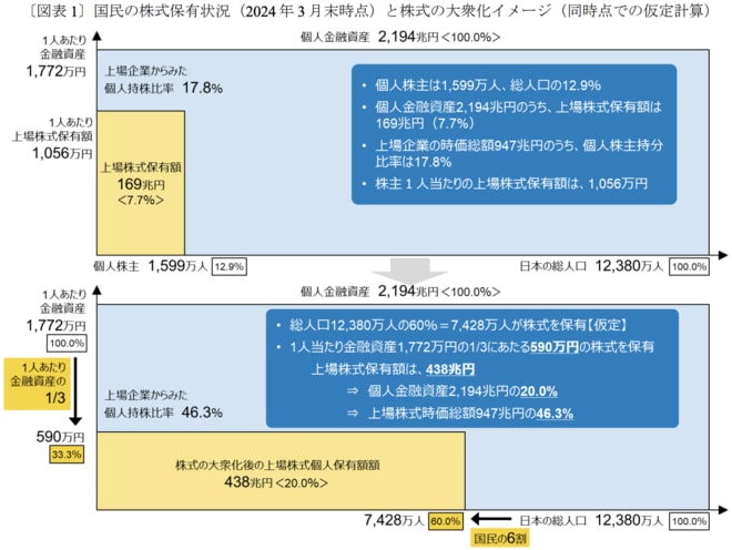 〔図表1〕国民の株式保有状況(2024年3月末時点)と株式の大衆化イメージ(同時点での仮定計算)