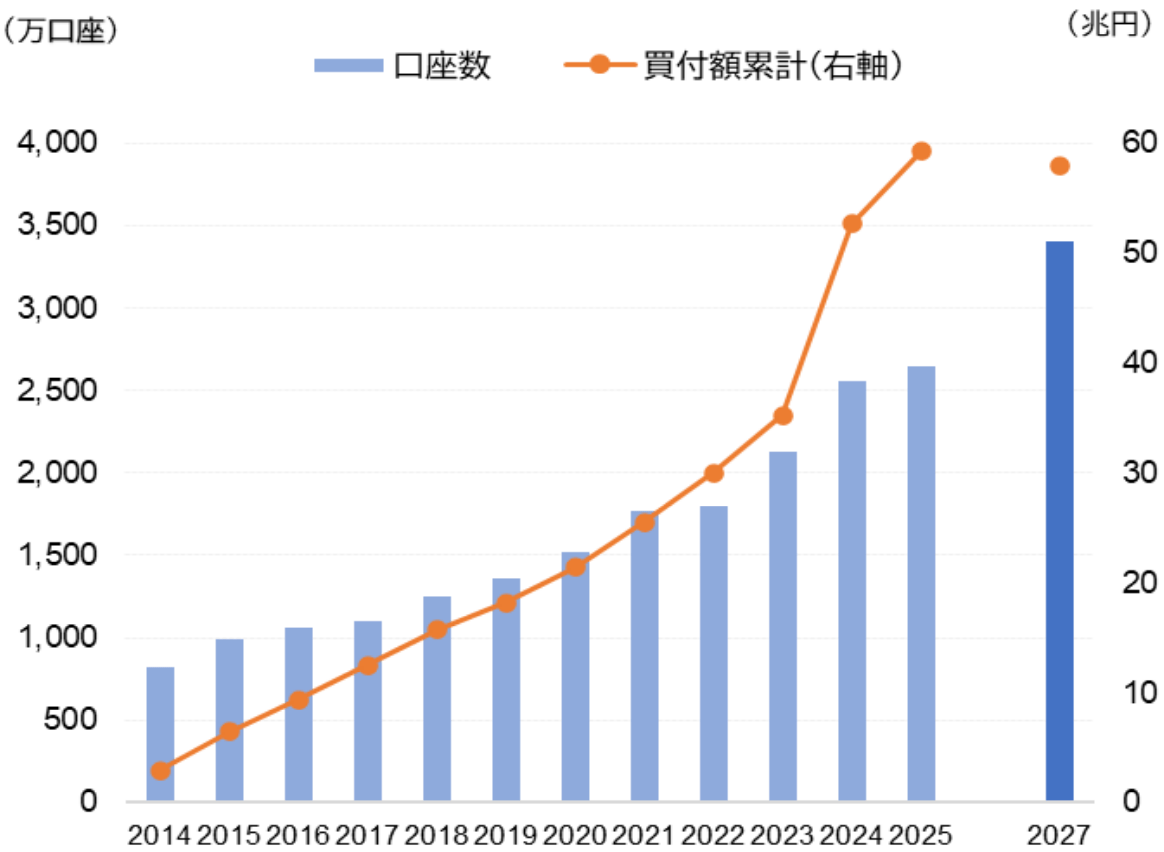 ※ 2025年は3月末までの実績値、2027年は資産所得倍増プランでの目標値