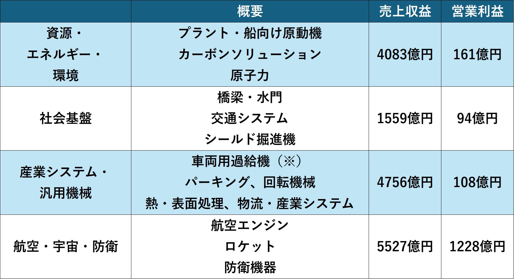 ・中核事業:資源・エネルギー・環境(クリーンエネルギー分野除く)、社会基盤、産業システム・汎用機械分野