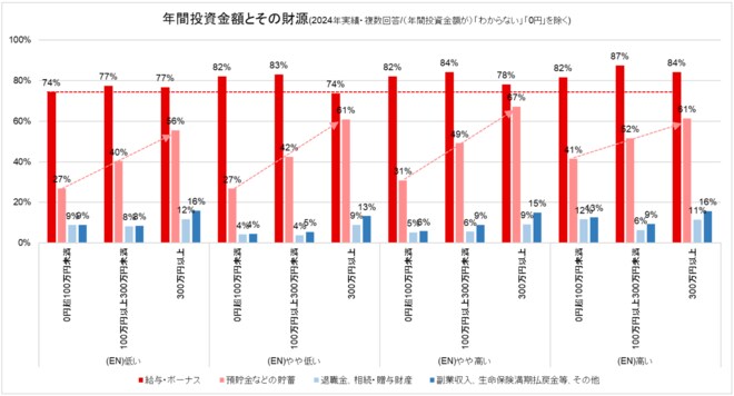 次に従業員エンゲージメントレベルごとに投資金額の財源を確認し、企業勤務者の投資行動を深堀する(図表 12)。