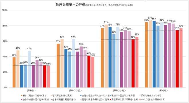 ここでの特徴は、すべての従業員エンゲージメントレベルにおいて、研修領域(資産形成・キャリア形成)に関する評価が一番低いという点である。中でも勤務先での「資産形成に関する研修・教育」はすべての従業員エンゲージメントレベルにおいて最低水準の評価に留まっている。