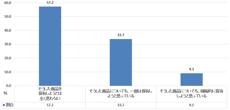 一方で「そうした商品を保有しようとは全く思わない」と回答した“消極派”は57.2%。こちらは単身世帯(66.1%)より8.9ポイント低い水準だった。単身世帯に比べると総じてリスク性資産も運用していきたいという前向きな世帯が多い傾向にあるようだ。