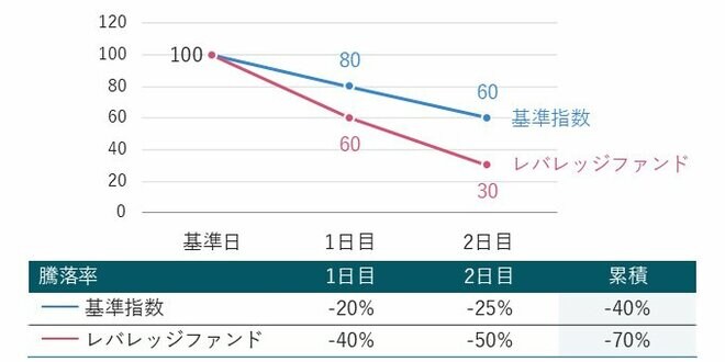 ※上記は例示であり、特定の指数やレバレッジファンドの動きを示すものではありません。上記では手数料や税金などは考慮しておりません。※金融庁の公表資料をもとにアモーヴァ・アセットマネジメントが作成。