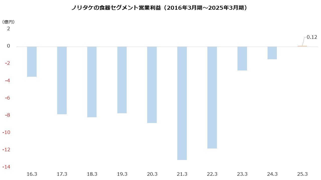 むしろ、食器事業は赤字が常態化していました。赤字は09年3月期から続いたとみられます。25年3月期の黒字は、実に17年ぶりです。国内向けが前期に黒字転換し、当期も維持したことで事業全体が収益化しました。経費削減や高収益商品へのシフトに取り組んだほか、価格改定も実施したことで採算が改善した模様です。