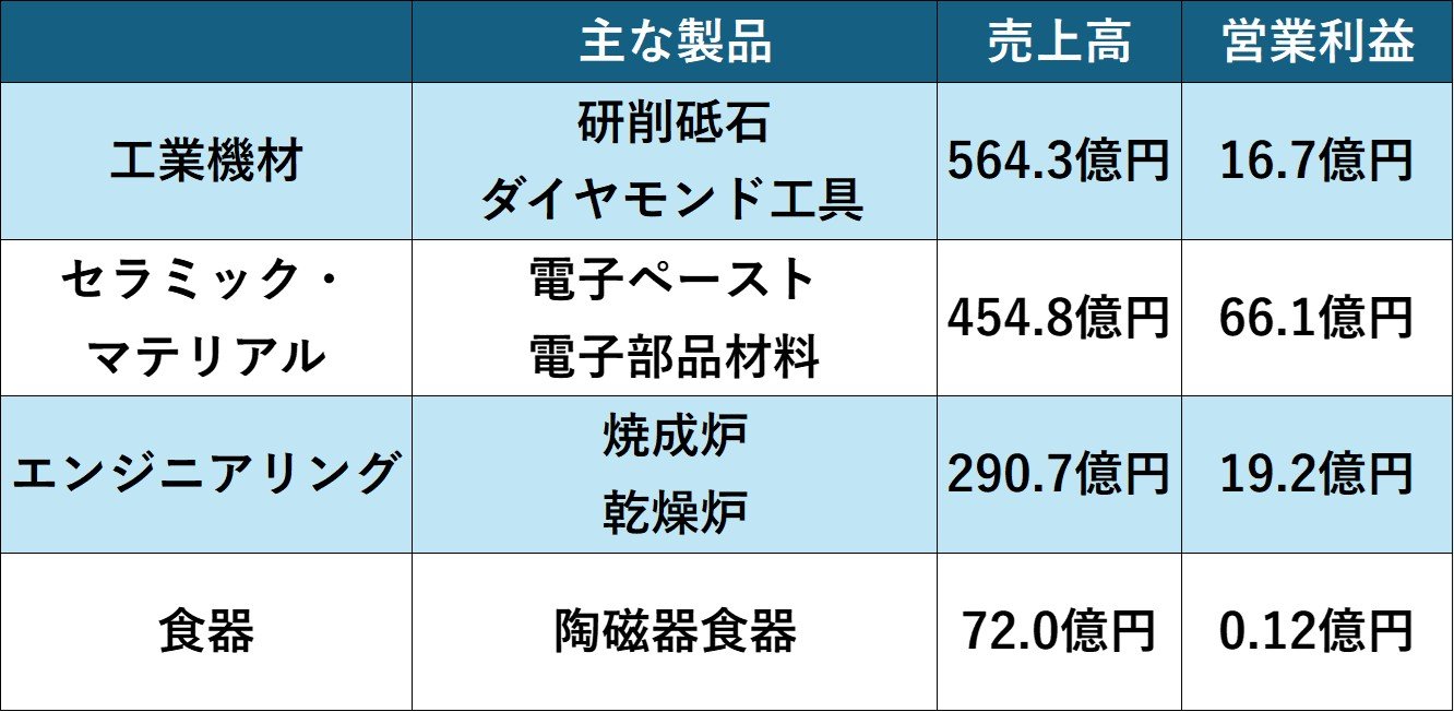 ノリタケは高級陶磁器メーカーとして有名です。同社はTOTOや日本ガイシ、日本特殊陶業といった森村グループの中核企業で、食器事業はその祖業です。しかし、実は産業向けの製品が主力で、電子部品材料や研削用工具などが収益を支えています。
