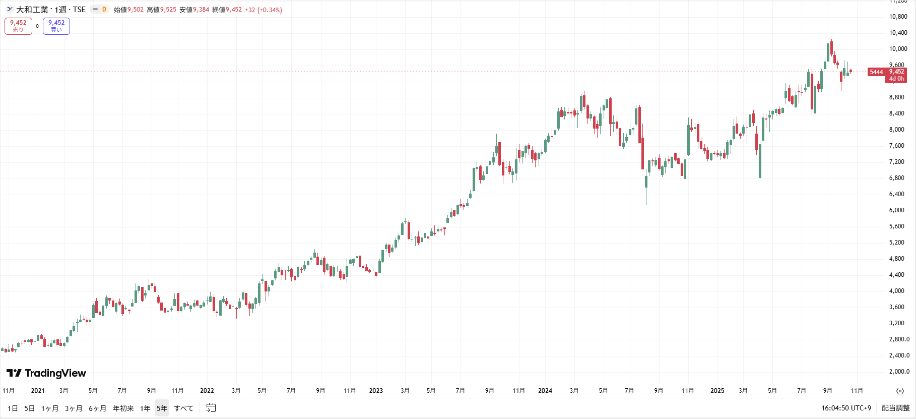 【大和工業の株価チャート(過去5年間)】