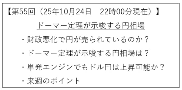 今回のマーケットトークのテーマは「ドーマー定理が示唆する円相場」です。ドーマー定理とは一体どういったものか、高市内閣の政策の方向性や円相場への示唆について解説します。