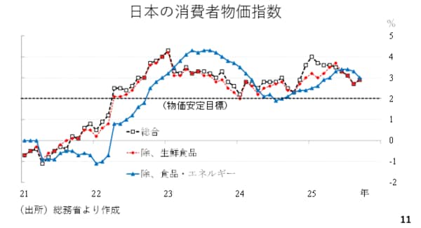 本日発表された日本の消費者物価指数では、輸入インフレの影響を受けやすい総合指数や生鮮食品を除く総合指数の伸びが再び拡大に転じました。足元の円安を踏まえると、今後再び「第1の力」が持ち直す可能性があります。また。輸入インフレの影響を受けにくい食品とエネルギーを除いた総合指数も高水準です。こうした中で緩和的な金融政策や財政支出が加わるとインフレは持続する可能性が高いと考えられます(スライド11)。