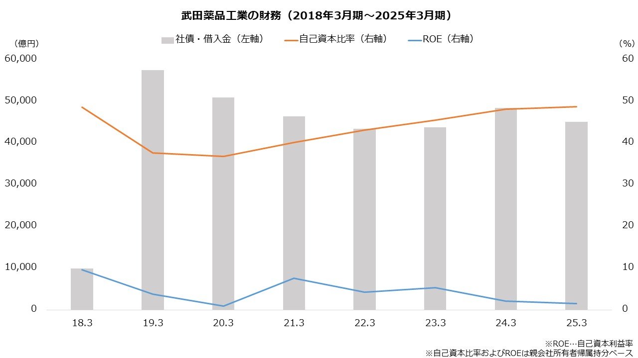 次に財務状況です。シャイアー買収費用は借入金で調達したため、有利子負債は大幅に増加しました。もっとも、近年は消化が進み、自己資本比率も改善の傾向です。