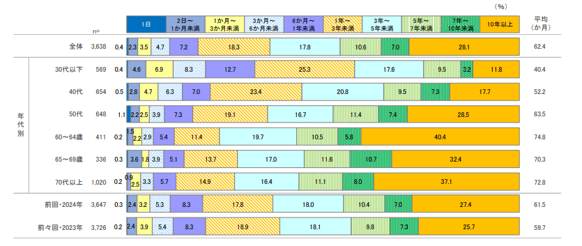 平均の保有期間は62.4カ月、つまり約5年2カ月となっており、前回調査と同程度だった。この結果から日本の個人投資家の平均的な姿として、5年以上という比較的長期の視点で株式投資を行っているといえそうだ。