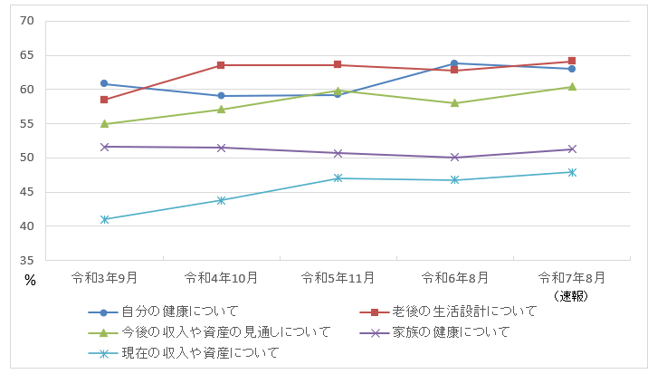 <調査概要> 調査名/「国民生活に関する世論調査」(速報) 調査主体/内閣府 調査時期/令和7年8月7日~9月14日 調査対象/全国18 歳以上の日本国籍を有する5000 人(回収数2729 人)調査方式/郵送法
