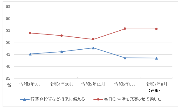 <調査概要> 調査名/「国民生活に関する世論調査」(速報) 調査主体/内閣府 調査時期/令和7年8月7日~9月14日 調査対象/全国18 歳以上の日本国籍を有する5000 人(回収数2729 人)調査方式/郵送法
