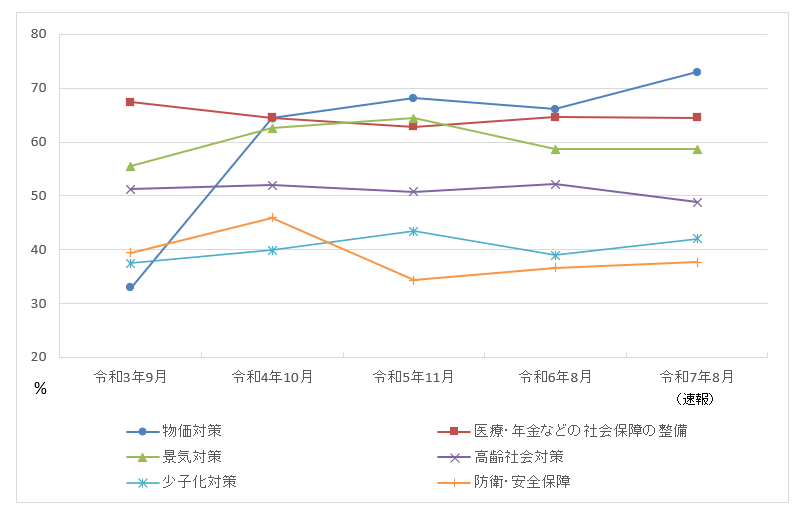 <調査概要> 調査名/「国民生活に関する世論調査」(速報) 調査主体/内閣府 調査時期/令和7年8月7日~9月14日 調査対象/全国18 歳以上の日本国籍を有する5000 人(回収数2729 人)調査方式/郵送法
