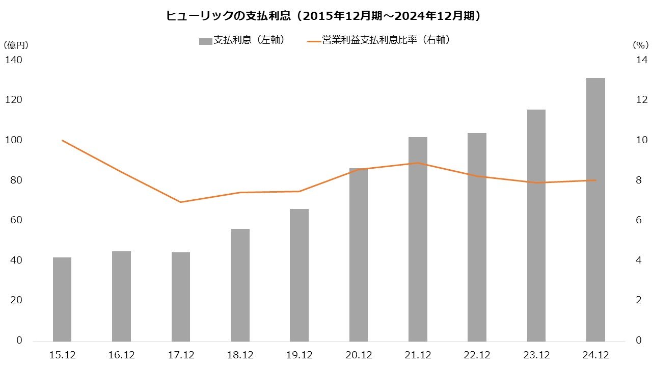 もっとも、支払利息の対営業利益の比率はおおむね8%前後に収まっており、利益成長でカバーできている状況です。インタレスト・カバレッジ・レシオ(※)も27.4倍(24年12月期)と高く、資金繰りにも余裕がうかがえます。金利上昇による悪影響は、少なくとも現時点では限定的といえそうです。