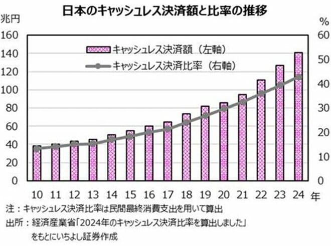 神様:日本は海外諸国に比べればキャッシュレス決済の比率はまだまだ低い状況です。経済産業省によれば、2024年の日本のキャッシュレス決済比率は42.8%で政府の目標を前倒しで達成していますが、他国ではキャッシュレス決済比率が50%を超えている国も多く、日本の比率は高いとは言えません。政府は将来的には世界最高水準のキャッシュレス決済比率である80%を目指す目標を掲げています。