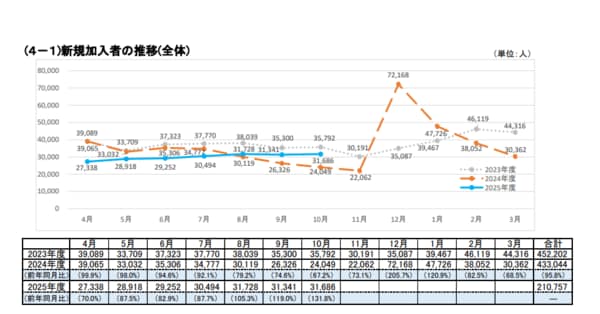 iDeCo新規加入者数の推移(2025年10月)拡大表示