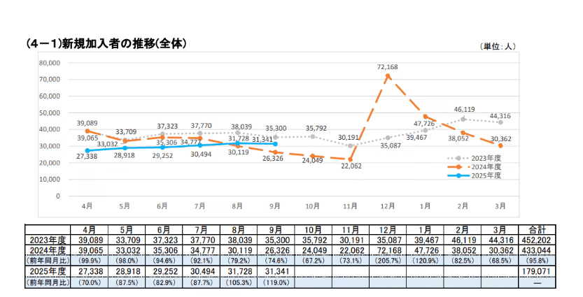 また、従業員のiDeCoに企業が掛金を上乗せ拠出するiDeCo+(イデコプラス、中小事業主掛金納付制度)は9530事業所(同113.6%)で実施、対象者数は6万653人(同113.4%)となった(2025年10月末)。