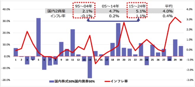 〔図表8〕リスク抑制型ポートフォリオ(国内株式50%国内債券50%)とインフレ率の実績