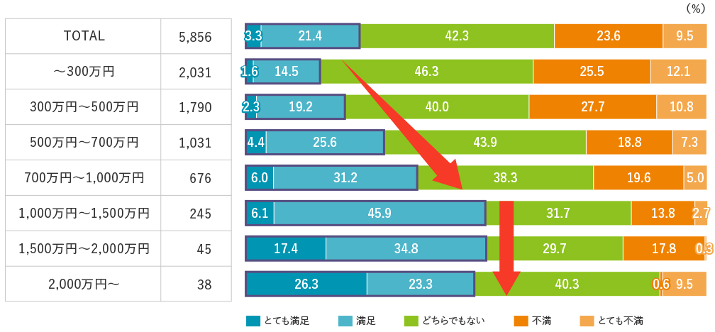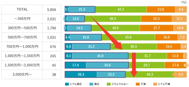 年収 1,000万円で勤労者の報酬満足度は頭打ち?