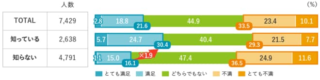 また、報酬には定例給与などに加え、原則退職時に支給される「退職金」などもあります。この退職金の水準を把握している人は、そうでない人に比べて、報酬満足度が高い人の割合が1.9倍と、大きな差となりました【図表3-1】。こちらも、年収が上がるほど、この差が顕著に広がっています【図表3-2】。