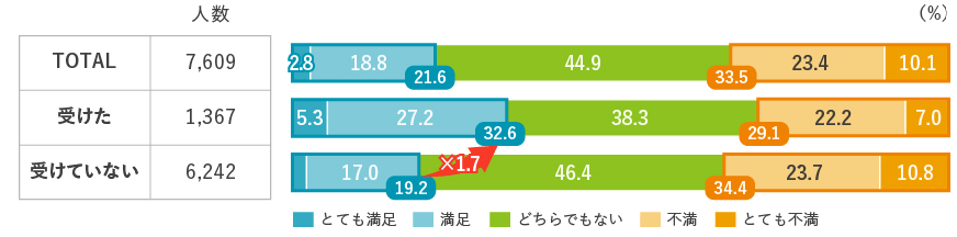 報酬に対する満足度の向上は、賃上げ等による客観的な水準の向上も非常に大切です。一方で、個人の満足度は主観に依るところも大きく、客観的な報酬水準の向上だけでは一定程度の限界があることも示唆されています。