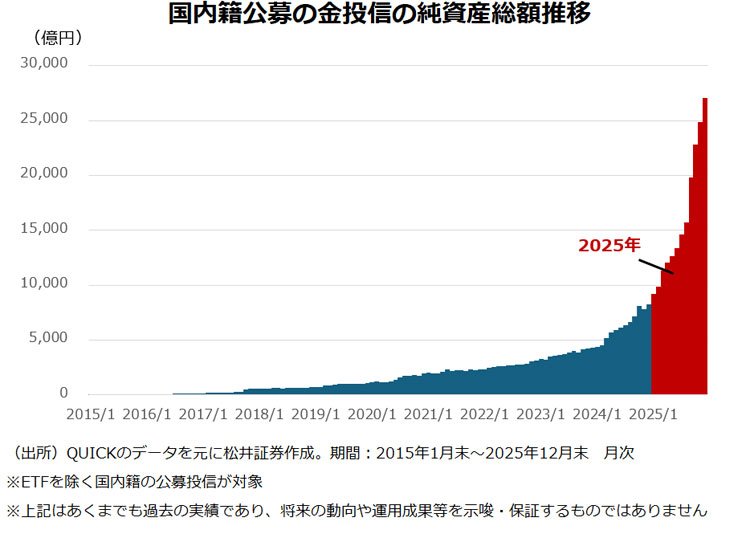 2025年に金投信の規模は3倍強に