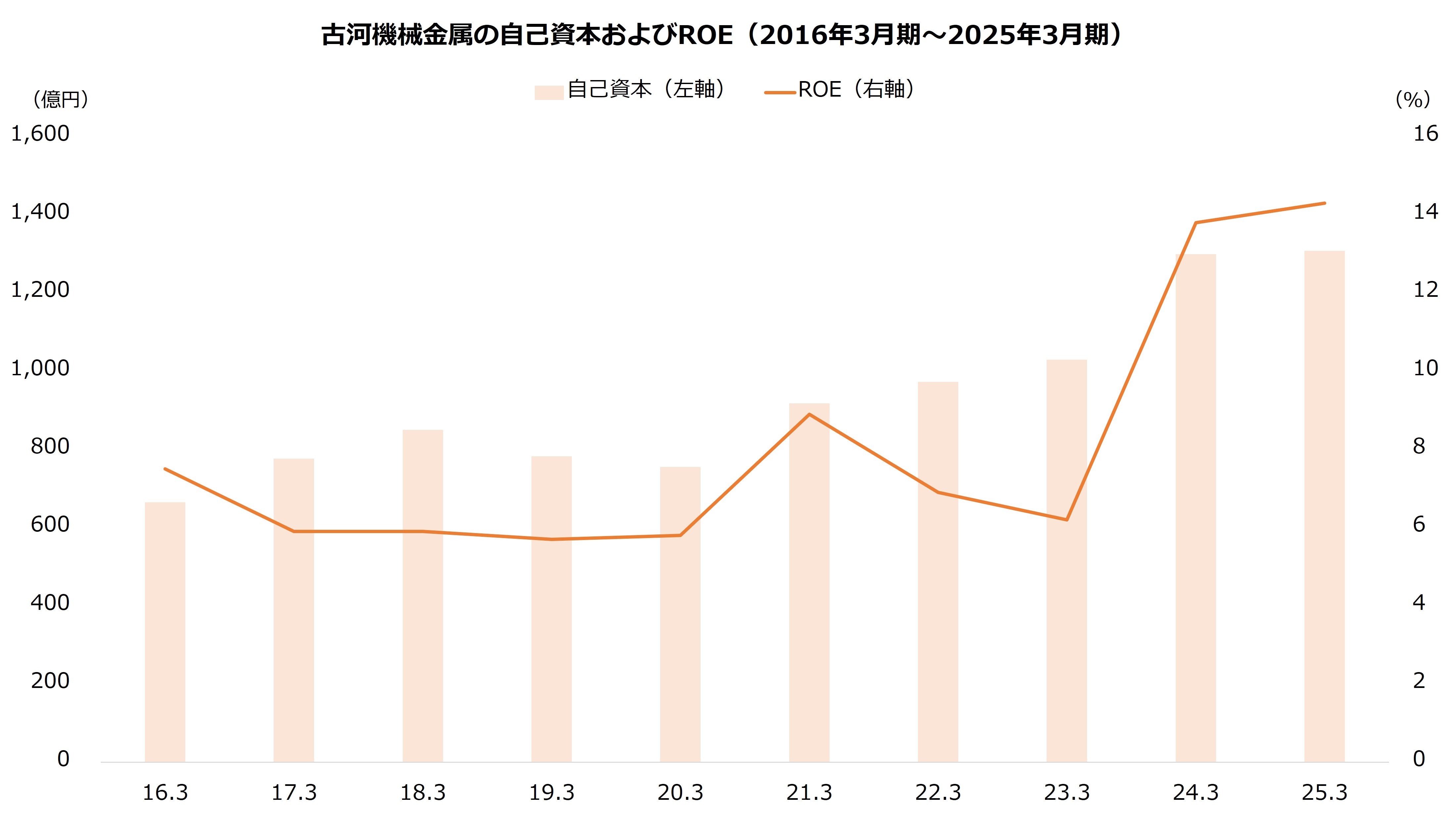 株価を押し上げているとみられるもう1つの理由が資本政策です。古河機械金属は資本効率の改善を積極化しており、その取り組みが投資家の評価を集めています。