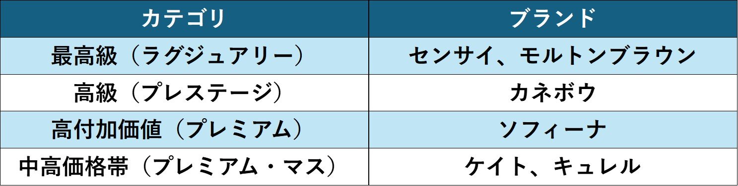 【花王の化粧品の注力6ブランド】