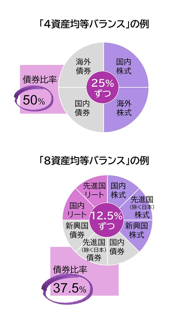 債券の比率が6割か7割ということは、株式(やリート)の比率が4割か3割ということなので、株式市場がガンガン上がってもその恩恵を4割か3割しか受けられません。でもそれで良いのです。その代わり、株式が下落する時もショックが緩和されることが期待できます。