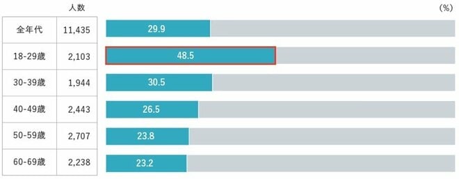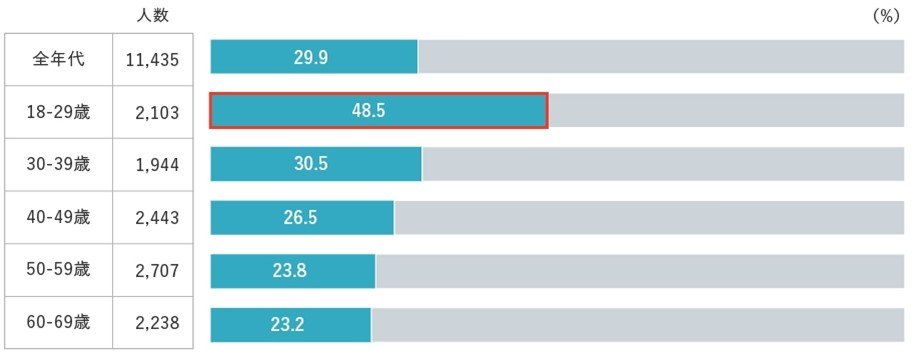 特に、若年層ほど高い傾向となり、18-29歳では48.5%と顕著に高い結果となりました(図表1)。