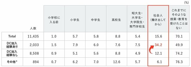 社会人における金融教育受講チャンスのカギは「企業型確定拠出年金(DC)」?