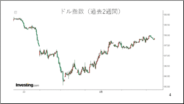 ドル指数もドル円同様にベセント財務長官の発言やウォーシュ元 FRB 理事の指名を受けてレートチェック前の水準にかなり接近しつつあります(スライド 4)。
