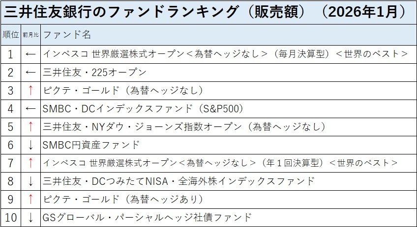 ※三井住友銀行サイト内「ファンドランキング」の「販売額」「1カ月」のデータに基づき編集部作成。期間:2026年1月1日~1月31日。