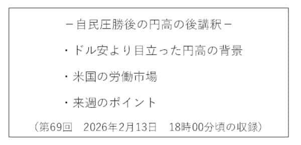 今回は「自民圧勝後の円高の後講釈」について解説します(スライド1)。
